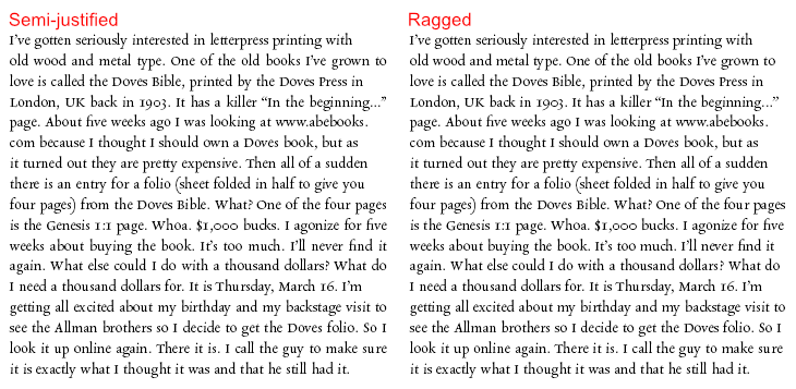 It's a bit jarring at first — probably because this style of justification is so uncommon — but it's surprisingly readable after getting used to it.